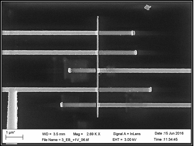 In the pursuit of sub-20 nm features, we employ Electron Beam Lithography on HSQ resist. Our process begins by fabricating silicon (Si) nanowires on SOI (Silicon-on-Insulator) substrates using lithography and reactive ion etching (RIE). This ensures structural integrity and precise dimensions. To form Hall contact electrodes, we utilize angled substrate evaporation, achieving optimal sidewall contact. For accurate assessment, we analyze electrical contacts using the secondary electrons voltage contrast technique. To characterize the devices, we perform measurements at both room temperature and cryogenic temperatures. These measurements allow us to determine resistivity, mobility, and carrier density. Specifically, we conduct both DC and AC Hall effect measurements on these Si nanowires. The AC measurements involve two distinct options: 1) magnetic field sweeping in the range of ±14T and 2) rotating the sample under a constant magnetic field at +14T.